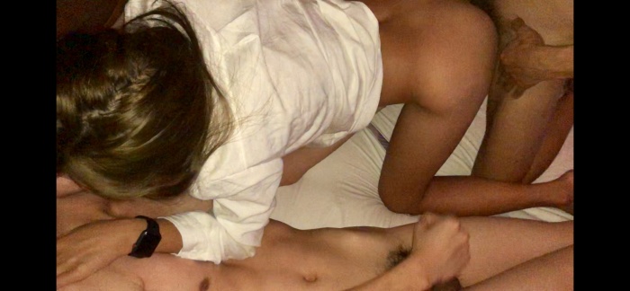 老婆已经完全投入状态,开始为帅哥口起来,其实我很吃醋,平时爱爱,老婆都很少帮我口,这就是3p带来的刺激与感觉